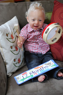 I don't know how our little baby boy is already 13 months, it's going too fast!  He is now letting go and standing in his sumo pose, smiling and so proud of himself. He's take a couple stutter steps, but not walking yet.  Ethan is definitely finding more ways to communicate and now has added, "More" and "dog" to his vocabulary.  We think he tries to say, "Eliana" by saying, "nana."  He will point and grunt for a lot of things if he is not satisfied with his food or what he's doing.  For example, the other day we had fresh raspberries from the farmers' market and he wanted more instead of toast, so he kept pointing and grunting at the counter where the raspberries were.  He's also becoming more opinionated about what he's doing and if he wants to do a different activity. He will push a book away if he doesn't want to read that particular one.  It's fun and scary to watch him more deeply develop his tastes:)  It's also so fun to watch his and Eliana's relationship grow.  They love playing together, even though he still gets wrestled to the ground and pushed around.  He watches her and laughs in delight when she wakes up in the morning and comes downstairs. So precious.